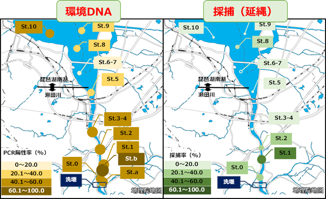 結果、環境DNA分析と採捕調査の両方で洗堰周辺に比較的多く生息していることが確認でき、環境DNAと採捕数を比較して駆除効果を見ると、環境DNA分析の方が感度が高いということが分かりました。
